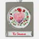 El húngaro floral Matyo Kalocsa Motif con forma de corazón rosado y mensaje de escritura caligráfica- texto en él con familia cambiable, año y nombre del mensaje. Un regalo perfecto para Navidades para abuelos, padres, hija, hijo, suegra, tío, niñera, mejor amiga,