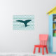 Diseño gráfico de una cola de ballena en un mar de chevron. Es bueno adornar tu casa o paredes de oficina. Se adaptará a la decoración de una casa de playa.