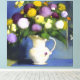 La Decoración Delicada Del Muro De Las Flores. Tranquilizar su entorno con esta suave y estilizada huella de acuarela. Delicados azules, amarillos y violetas crean un sereno jarrón de flores.