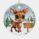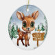 ¡Adorno de cerámica decorativo de fauna silvestre del país de las maravillas invernal para las fiestas! Con una cierva bebé linda frente a un bosque nevado, completo con copos de nieve que caen suavemente. Un letrero dice "Deja que nieve". La ilustración gráfica de dibujos animados invernales y vibrantes captura la alegría acogedora de la temporada, con un bosque de hoja perenne. Esta decoración de dos lados cuelga hermosamente en su árbol de Navidad, corona o como un regalo festivo. Perfecto para los amantes de los animales cervatillos caprichosos, o cualquiera que sueñe con una Navidad blanca: ¡personalice para hacerlo único!