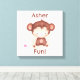 ¡Lleva alegría y diversión a cualquier espacio con este adorable arte de pared personalizado de mono! Con una ilustración de un mono marrón alegre y la afirmación "<name> es divertido", este lienzo o póster es perfecto para habitaciones de niños, guarderías o salas de juegos. Diseñado para inspirar sonrisas y positividad, es una excelente idea de regalo para cumpleaños, baby showers o cualquier ocasión especial. ¡Agrega un toque animado y personal a el espacio de tu hijo con esta encantadora obra de arte!