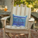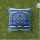 Un diseño de temática marinera, con la imagen de un ancla sobre un fondo azul rayado, para una decoración de diseño de casa de playa. Delantera y trasera con algunas variaciones (color del ancla y rayas)