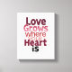 La frase "El amor crece donde está tu corazón" en esta romántica obra de arte en la pared. Ideal para dormitorios, regalos de boda o viveros, esta impresión evoca calidez y belleza natural.