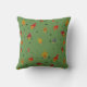 Los hongos albergan decoración de hogar infantil. Hermosas setas pequeñas con corazones de fondo verde, bonito cojín de tiro.