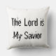 Cojín decorativo con Jesús y las palabras "El Señor es mi Salvador" escritas en la espalda de la almohada