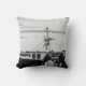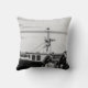 Cojín foto blanco y negro de un barco pesquero con jaulas a langostas, título: “La puesta en agua”, Iles-de-la-Madeleine, Quebec, el Canadá. María-Eva LaBadie fotografió