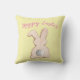La almohada de tiros de Semana Santa. almohada de tiro amarillo con la parte posterior de un conejito de cola de cottontail con las palabras "Feliz Pascua" en una tipografía divertida.
