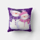 Decora tu hogar esta temporada navideña con este cojín cuadrado festivo. Con una encantadora ilustración de una pareja de muñecos de nieve con un patrón de copos de nieve blancos sobre un fondo púrpura, seguro que dará a toda tu casa un ambiente festivo.