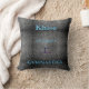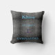 PERSONALIZA ESTE COJÍN CON EL NOMBRE DE TU GIMNASTA. Almohadón negro y blanco con letras azules.