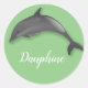Delfín gris lindo - agrega un nombre ahora. Viene con un fondo de color sólido verde sabio. Puedes cambiar el color ahora. Pegatinas redondos para los amantes de los delfines / para cualquiera cuyo nombre esté relacionado con delfines /mar/verano . Como Dauphine / Delphine /Aqualine . De la tienda de lumirala. ________________ Disponible en dos tamaños - los pequeños vienen 20 pegatinas por hoja / grande uno 6 pegatinas por hoja .