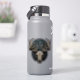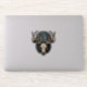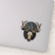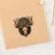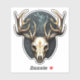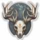 El gran cráneo de ciervo enlosado con un diseño de patrón en forma de montaje en pared con decoración de follaje al fondo.