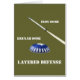 Muestra tanto al interceptor de Tamir del sistema de defensa antimisiles Cúpula de Hierro de Israel como a un kipá azul y blanco (yarmulke). Se necesita tanto esfuerzo humano como emunah (confianza o fe en Dios) para mantener a Israel a salvo. El texto que dice "HIERRO ALGO", "EMUNAH DOME" y "DEFENSA LAYERED" aparece en una tipografía de esténcil militar.