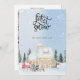 Elegante tarjeta de Navidad con tema de nieve. La casa cubierta de nieve, un árbol de Navidad, un muñeco de nieve y Papá Noel son las características principales de esta tarjeta... Combinada con una tipografía única "que nieve" la hace lucir más linda y elegante. Desea a tu ser querido con esta tarjeta esta Navidad....