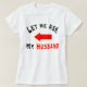 Esta es una frase graciosa de la camiseta que dice déjame preguntarle a mi esposo