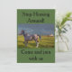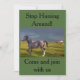 Una tarjeta de invitación humorística con una imagen de caballo. La parte posterior se ha dejado en blanco para que pueda añadir los detalles a sus invitaciones.