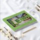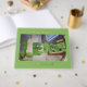 Dé a este hermoso libro de invitados que tiene una foto de hojas que deletrea la palabra 'SALIR' en una mesa de vidrio. Las reflexiones de la luz que llega a través de las persianas también reflejadas en la mesa sólo mejoran la idea de contemplación. Tiene un fondo verde con palabras en Relieve metalizado dorado. Qué maravilla mantener todos los mensajes y percepciones de celebración que dejan amigos y familiares.