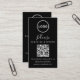 Tarjeta de visita moderna, elegante y sencilla para invitar a los clientes a que le dejen una reseña usando un código QR para dirigirla a sus medios sociales, o sitio web, esta tarjeta vertical de visita incluye un logotipo comercial personalizado y texto adicional para el etiquetado, o información de contacto. La estrategia perfecta para construir una audiencia, aumentar los seguidores, aumentar la base de clientes y crear una comunidad para generar publicidad de calidad.