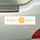 La pintura del tipo amarillo y anaranjado brillante explosión de la flor de la energía, con la declaración, "dejó el sol brillar adentro," impreso en pegatinas para el parachoques.