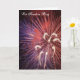 La tarjeta de felicitación de los fuegos artificiales con "feliz el 4 de julio" imprimió en el interior. Los ingresos van a ayudar a nuestras tropas en ultramar.