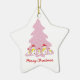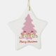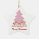 Dejemos que nieve personalizado adorno de Navidad con una fila de adorables hombres de nieve con gorra rojo, bufanda amarilla, ojos de botón y palos en un lindo árbol de Navidad con copos de nieve.