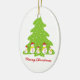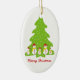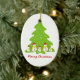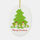 Dejemos que nieve personalizado adorno de Navidad con una fila de adorables hombres de nieve con gorra rojo, bufanda amarilla, ojos de botón y palos en un lindo árbol de Navidad con copos de nieve.