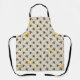 Este delantal presenta un patrón de abejas doradas y negras vendidas en un gráfico de Relieve metalizado falso dorado superpuesto sobre un fondo gris claro.