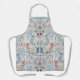 Unique, abstract nature pattern apron. This hand-illustrated pattern is a predominently gray-blue color. Pink ladybugs and orange leaves combine with darker blue outlines to create a whimsical, symmetrical design taken from nature. The design repeats in a large, half-drop pattern. The neck strap and ties are also gray-blue. There is no text, but just ask and I'll be happy to add a name or other wording for you.