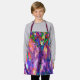 Un delantal abstracto violeta y azul con un impresionante cuadro abstracto de colores a juego.