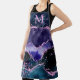 Este delantal cuenta con un elegante y glamuroso fondo de mármol azul marino y azul verde azulado con falsos toques purpurinas morados. El monograma combina el guión manuscrito y las fuentes sans serif modernas para un aspecto elegante y sofisticado. Esto hará el regalo ideal ya que se puede personalizar con un nombre y una inicial. Las secuencias y la textura angustiada crean la mezcla perfecta de moda y de grunge.