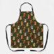 Un delantal de Navidades amables y divertidos con ilustracion a mano de gatos y perros con luces de Navidad. El fondo es verde.