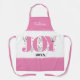 Este delantal es la elección perfecta para añadir un toque festivo a sus Navidades horneando. Cuenta con una brillante impresión rosa "JOY" rodeada de bayas rojas y hojas verdes, con un fondo blanco. Las bandas rosas con bordes de vieiras en la parte superior e inferior proporcionan un bonito contraste. Para hacerlo aún más especial, puede personalizar con su nombre. ¡Disfruta de llevar este alegre delantal mientras preparas tus dulces!