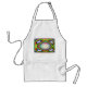 Este delantal presenta un patrón multicolor de colores psicodélicos brillantes alrededor de una estructura central de forma de huevo. Se parece a una fantasía de una nave espacial alienígena lista para secuestrar una terrina.