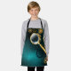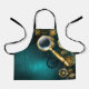 Una lupa antigua con mango dorado y lente convexa sobre el fondo verde con los engranajes dorados y un reloj antiguo. Estilo Steampunk.