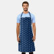 Un delantal con un patrón de anclas blancas sobre un fondo azul.