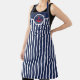 © 2020 Socialite Designs Inc. Encargo de su sala de desorden con este delantal con temática náutica. El diseño incorpora rayas azules, blancas y un ancla dentro de un círculo con texto de personalizable. Si necesita ayuda con el texto, póngase en contacto con Socialite Designs.