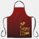 Auspiciosas nubes doradas + papel cortado Ox dorado, Año dorado del x, saludo dorado en chino y gran dorado 2021 escrito en estilo caligráfico + ideograma Ox (fuente). Todos los elementos se pueden mover según se desee. Diseño en un gran delantal con fondo rojo oscuro degradado. Tarjeta de saludo coincidente, postal de vacaciones, invitación, artículos de artesanía, suministros de fiesta y más... Perfecto para un Año Nuevo Chino tradicional y moderno del Ocx 2021.