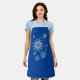 Este delantal se muestra en una estampación de copos de nieve de feriado de Navidades festivos. Color Sapphire Straps Personalizar blanco este artículo o compra como está. Puede elegir otro color de correa. Imagen de stock