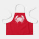 Apron mostrado en rojo con una gran huella de cangrejo con texto de cangrejo. Tamaño pequeño mostrado Personalizar este artículo o compra tal cual.