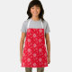 Este delantal se muestra en una estampación de copos de nieve de feriado de Navidades festivos. Colores Rojos Correas blancas de pequeño tamaño Personalizar este artículo o compra como está. Puede elegir otro color de correa. Imagen de stock