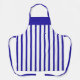 Este delantal se muestra como está en una audaz huella de rayas reales azules y blancas.