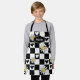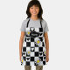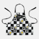 Un bonito delantal que presenta un diseño de cuadros negros y blancos con corazones y margaritas, perfecto para las artes, artesanía y aventura culinaria.