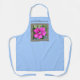 Los aprendices deberían ser hermosos y funcionales. Este delantal contiene un mensaje inspirador y una foto de un impresionante hibisco magenta rodeado por un borde hecho a partir de los intrigantes patrones en la corteza de los árboles.