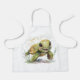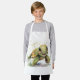 Un delantal muy lindo con el ilustracion de una tortuga sonriente y alegre.