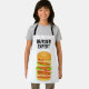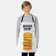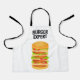 Imagen de la torre alta y texto del experto en hamburguesas impreso en un delantal pequeño. Añade un poco para los delantales medianos y grandes.