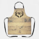 Pase las próximas vacaciones cocinando con este divertido y rústico delantal estilo de una casa de campo. Este duradero delantal personalizado muestra su letra monograma en negro rodeado de cordones de venados negros sobre un fondo de impresión de tablas de madera.