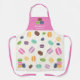 Un delantal para los amantes de los Macarones franceses. Viene con un patrón de macarones coloridos, un texto de personalizable sobre un fondo rosado en la parte superior. ¡Esto podría ser un regalo perfecto para un amigo que ama cocinar dulces o un pastelero!
