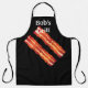 Este delantal negro se acentúa con dos piezas de tocino crujiente y se personaliza con un nombre de negocio, lo que lo hace perfecto para la marca. Esto se puede personalizar fácilmente como un regalo personal para el amante del tocino.