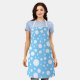 manchas blancas de diferentes tamaños sobre un fondo azul claro.