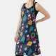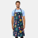 Cocina la magia festiva con el **Aprón feriado de jolly jumble**! Con un diseño lúdico de coronas de Navidad, adornos, medias, dulces y hombres de jengibre sobre un rico fondo azul oscuro, este delantal es la combinación perfecta de alegría vacacional y practicidad de la cocina.
