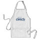 Un sólido delantal de algodón blanco con la palabra galesa 'cwtch', que significa 'abrazo' o 'abrazo' en un guión celta, lleno de un patrón de puntos de polka de bonito.